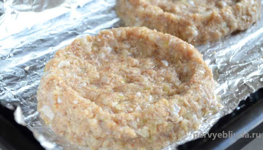 Шаг 3. В форму сразу выкладываем гнезда из пачки. Стараемся распределить их по всей поверхности, чтобы вошло побольше. Из фарша формируем котлетки. Смачиваем руки водой, чтобы они легче принимали форму и не прилипали к ладоням.