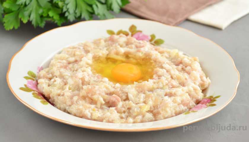 Хорошо вымешать фарш руками и несколько раз отбить его в миске, чтобы фарш стал однородным и плотным. -