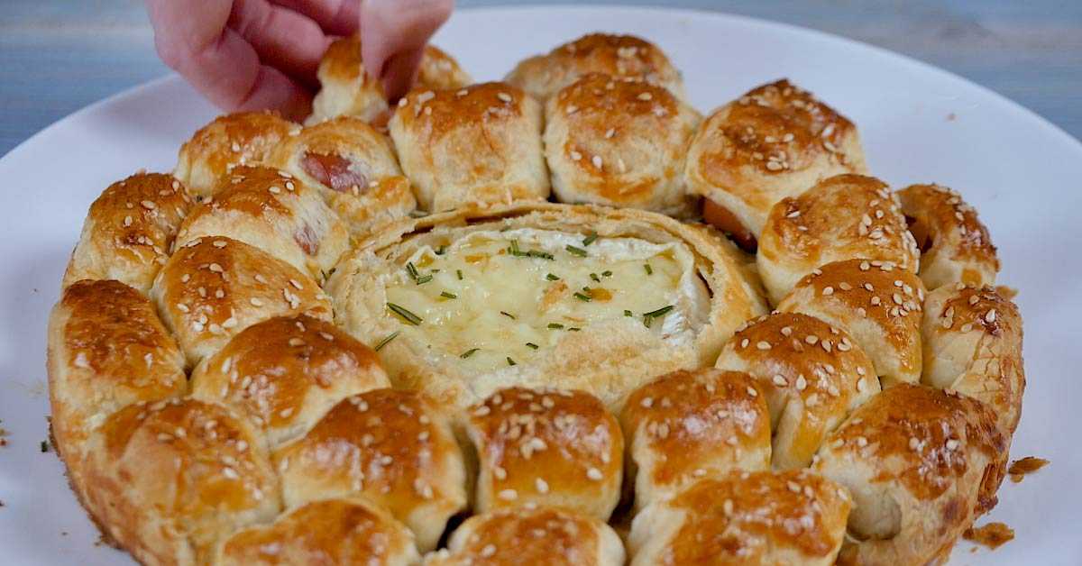 Такой оригинальный пирог можно подать даже на праздничный стол. Эффектная подача и интересная идея вызовут искренний восторг. А еще пирог с сосисками и камамбером очень вкусный.