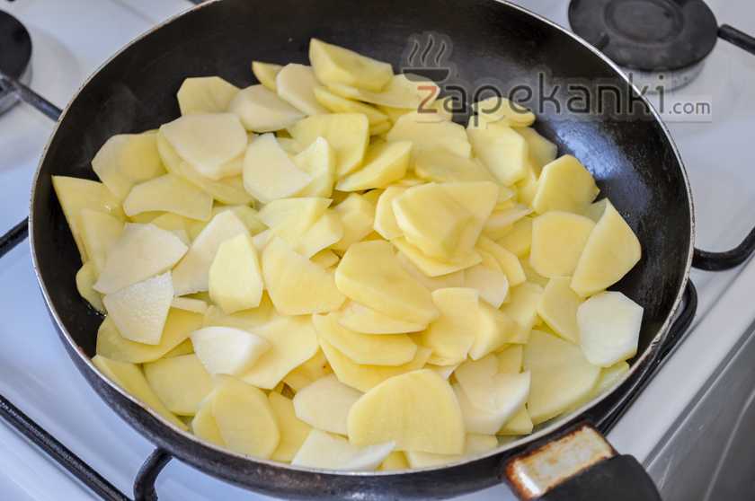 – для приготовления этого блюда лучше использовать сковороду с тефлоновым покрытием, к чугунной поверхности картофель довольно часто пристает;