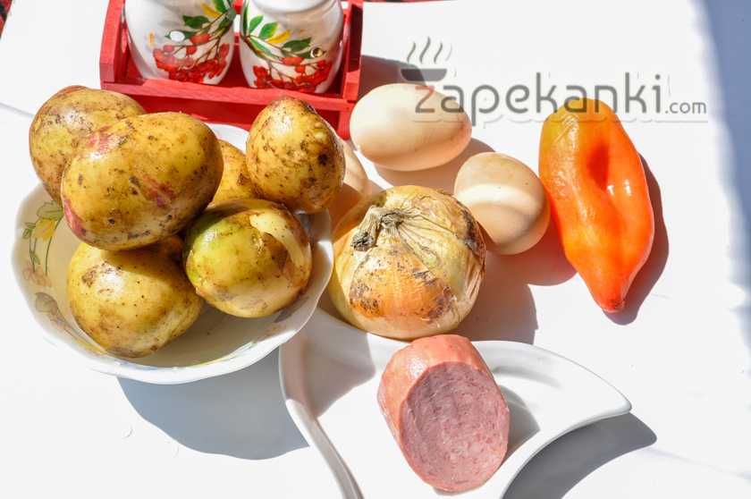 Ингредиенты для приготовления картофельной запеканки на сковороде