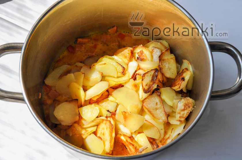 Приготовление картофельной запеканки на сковороде: