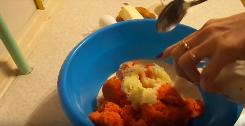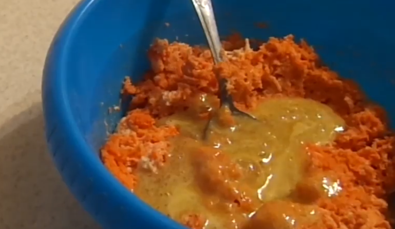 4. И смешиваем его с отстоявшейся морковно-яблочной массой. Снова все тщательно перемешиваем.