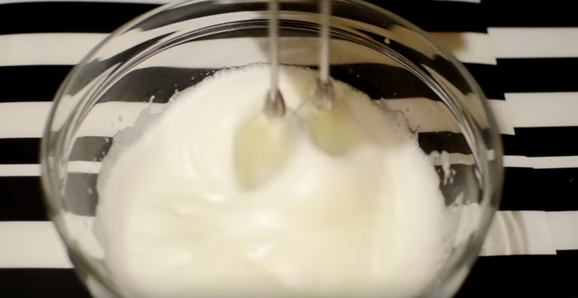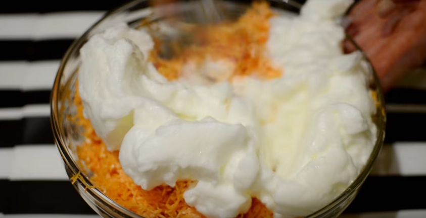 5. Последним ингредиентом добавляем белки и аккуратно вмешиваем их в общую массу.