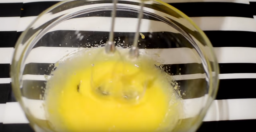 Желтки взбиваем миксером в отдельной миске до посветления.