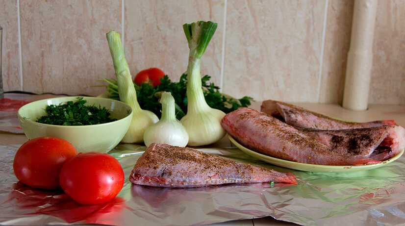 - 1 кг выпотрошенной и очищенной от чешуи рыбы;