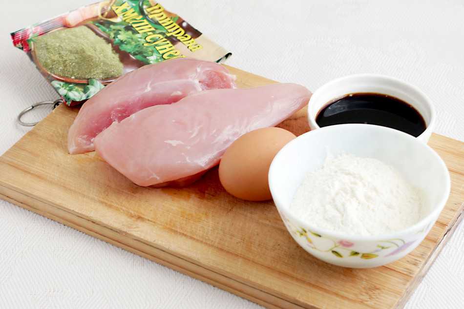 1. Промойте куриное филе и порежьте его на небольшие части. Каждый кусок отбейте, можете воспользоваться специальным инструментом для размягчения мяса.