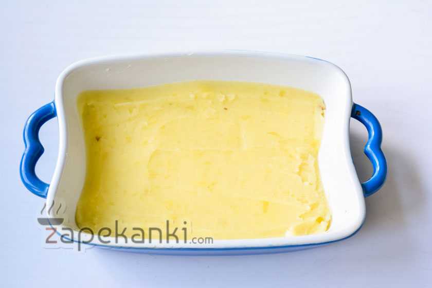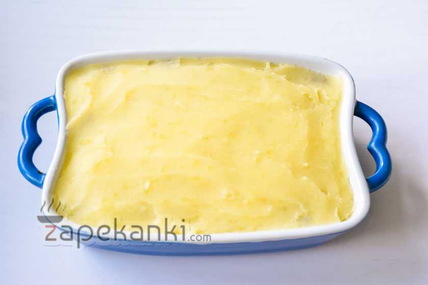 Разравниваем пюре ложкой, чтобы получился ровный картофельный слой.