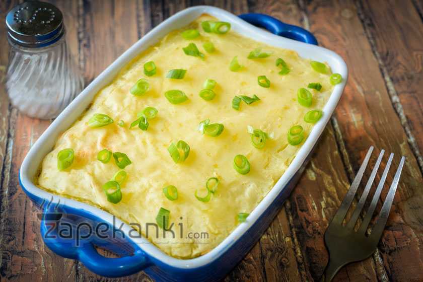 - В смазанную чашу выложите картофельную массу и готовьте 45 минут в режиме «Выпечка». Надумаете добавить фарш, поместите его в середине запеканки, время приготовления увеличьте на 15 минут.
