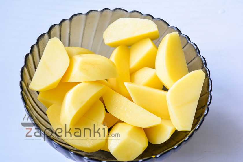 - Нарежьте картошку пластинами и поварите 20 минут в режиме «Овощи».