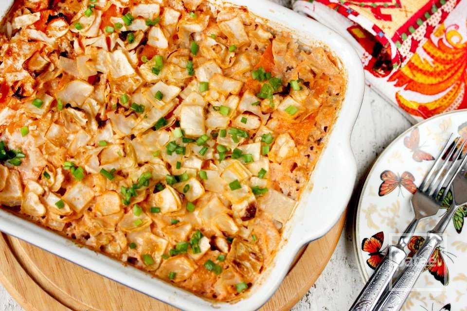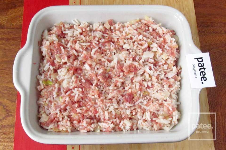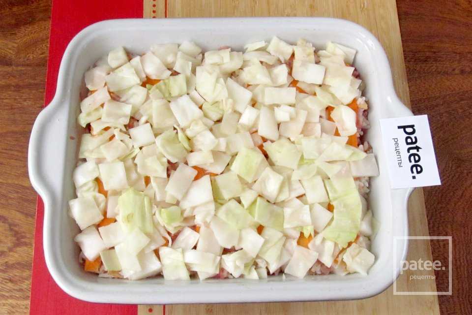 Описание рецепта — Рис с фаршем и капустой в духовке: