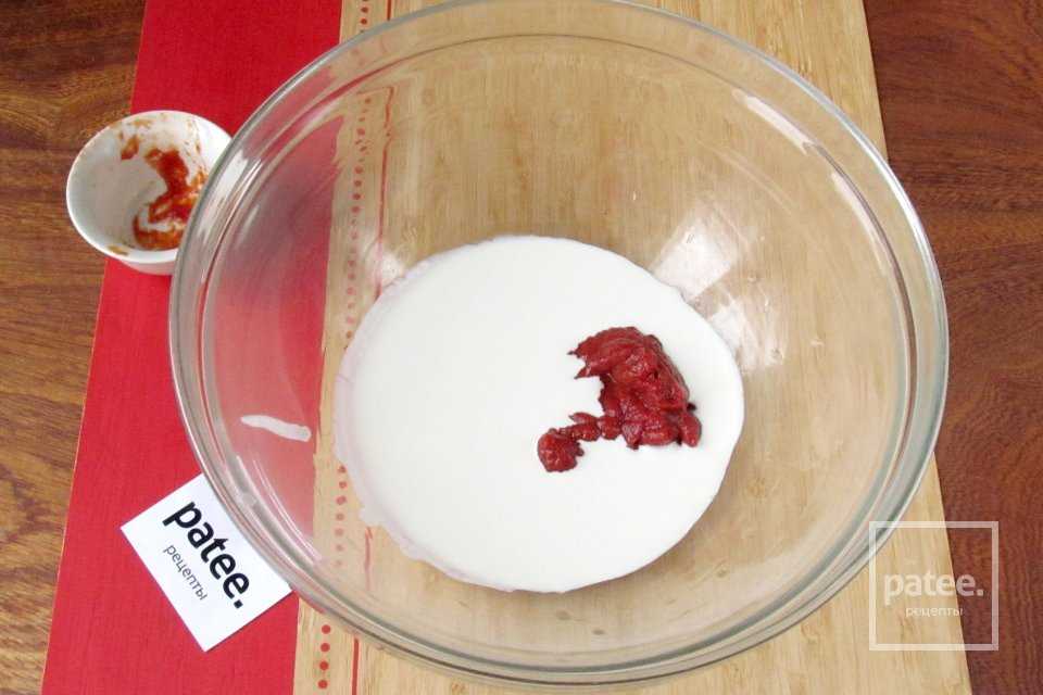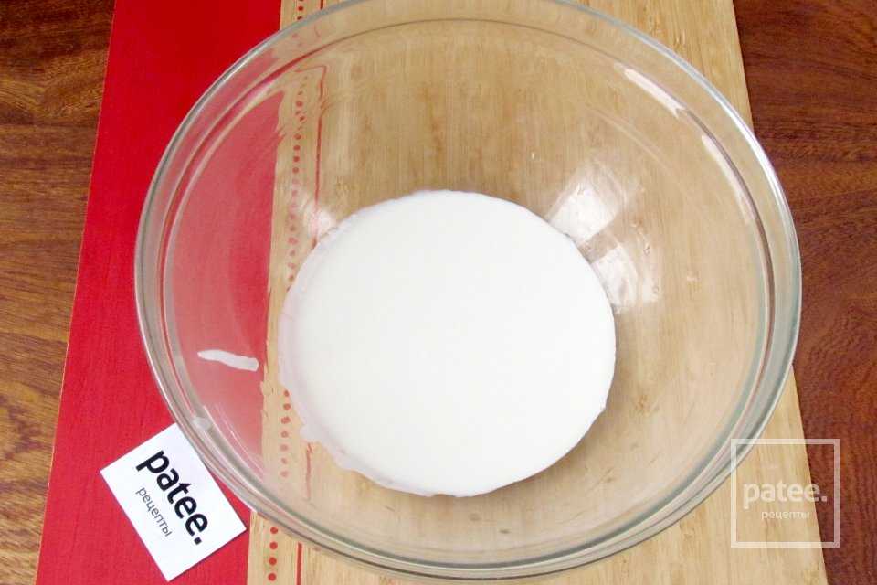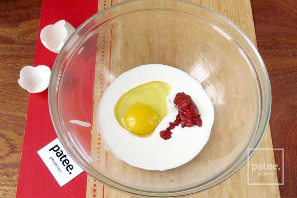 Теперь быстро приготовим соус-заливку. В миску перекладываем сметану.
