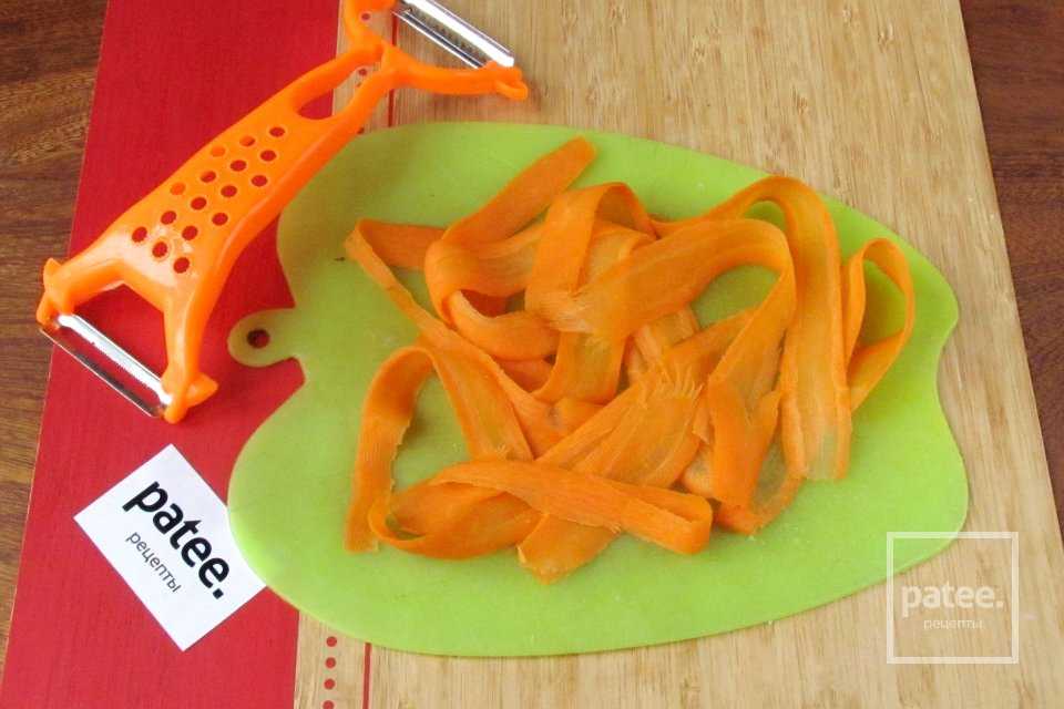 - 50 г моркови крупно натираем на терке, а 100 г лука режем мелкими кубиками. 0,5 кг капусты шинкуем как можно тоньше.