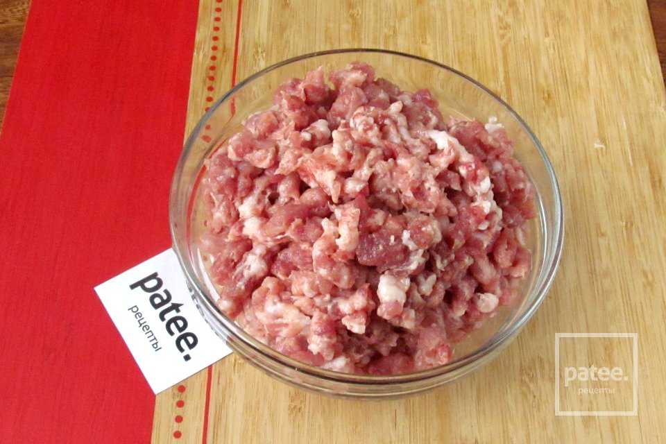 Мякоть свинины нарезаем небольшими кусочками и пропускаем через мясорубку.