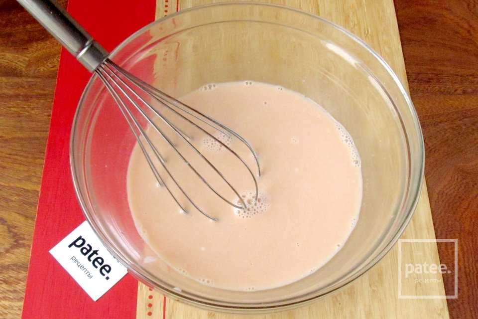 Вливаем кипячёную, но остывшую воду и венчиком перемешиваем, всыпав пару щепоток соли.