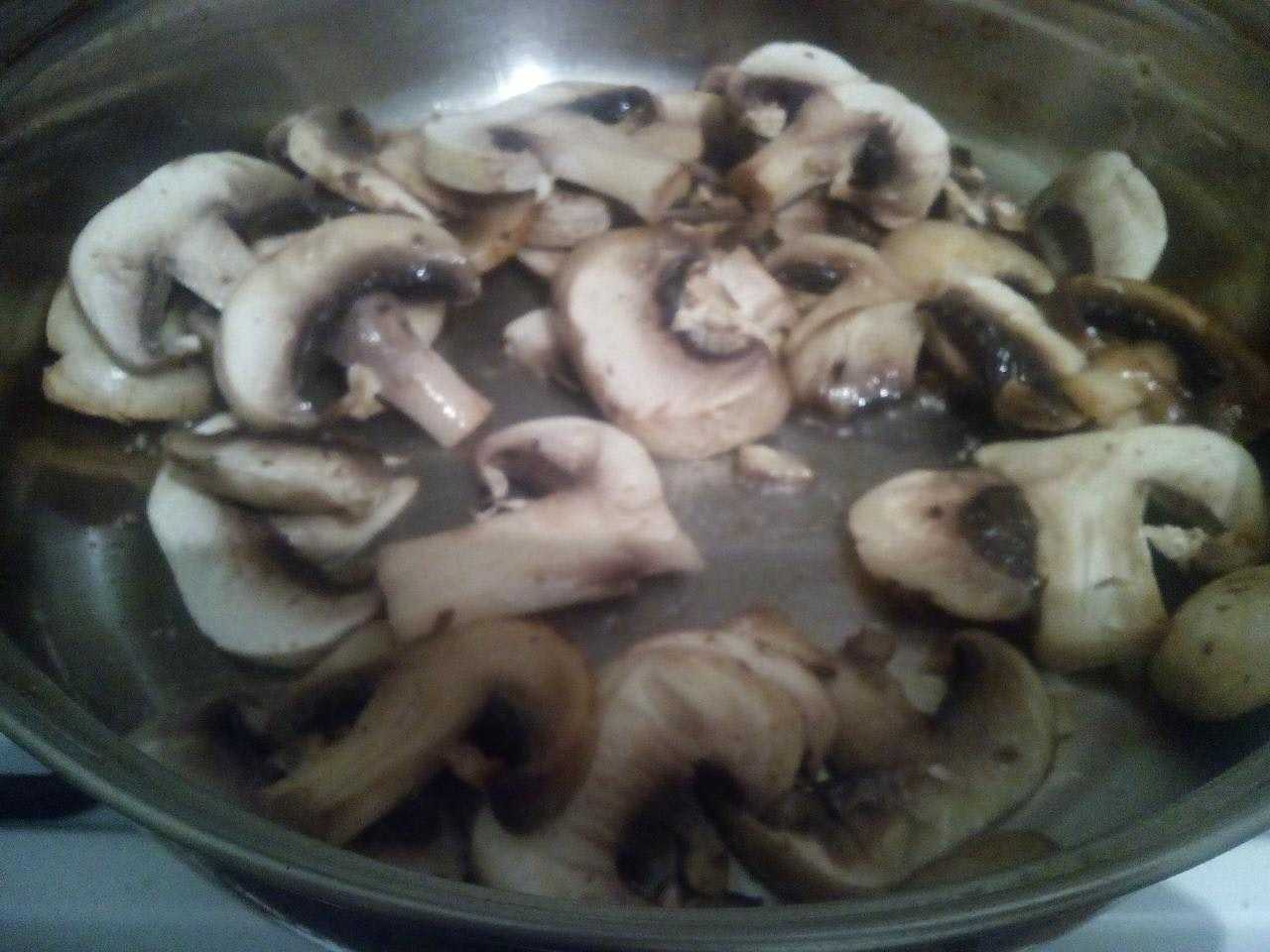 - Моем и чистим шампиньоны, нарезаем, и залив водой ставим тушить