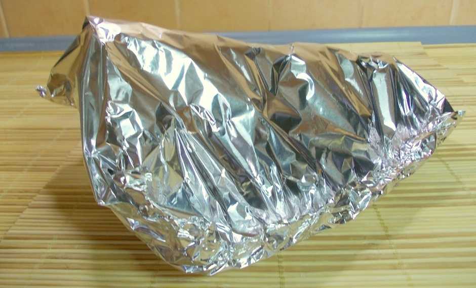 Заворачиваем в фольгу и отправляем в духовку на 10 минут при температуре 250 градусов.