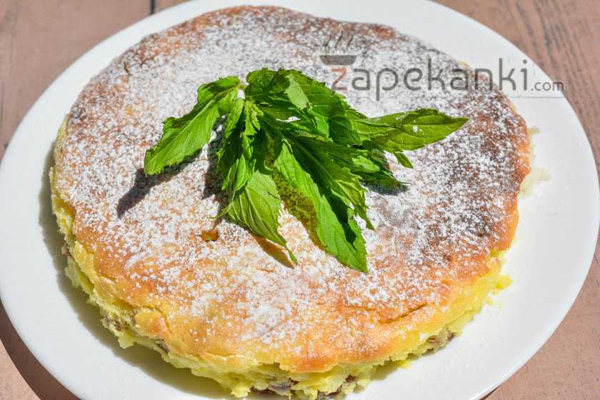 - Выпекать в горячей духовке, ориентируясь на цвет запеканки. Когда она хорошо поднялась и зарумянилась (на это пойдет около 50 минут) – можно доставать.