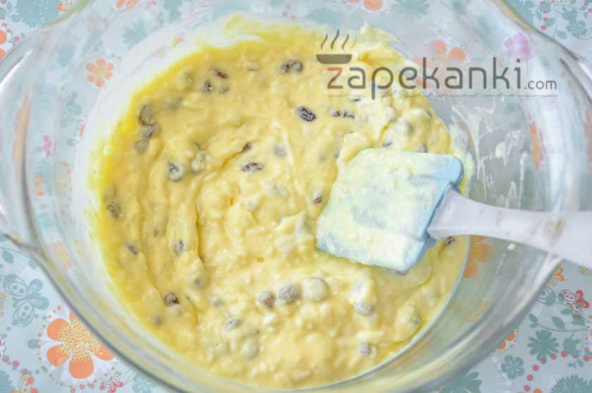 5. В полученную смесь добавьте изюм и аккуратно перемешайте.