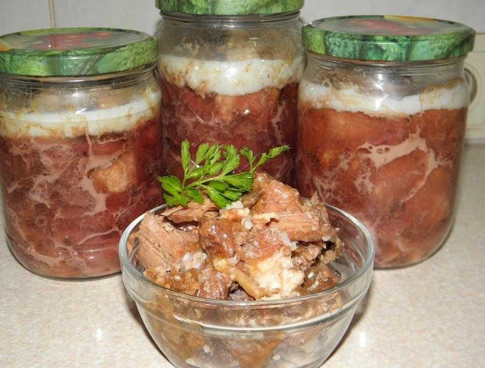 Внимание! Спустя указанное время проверить количество образовавшегося бульона в банках. Если жидкость не покрыла мясо полностью, влить в тару воду и увеличить время готовки на 60 минут