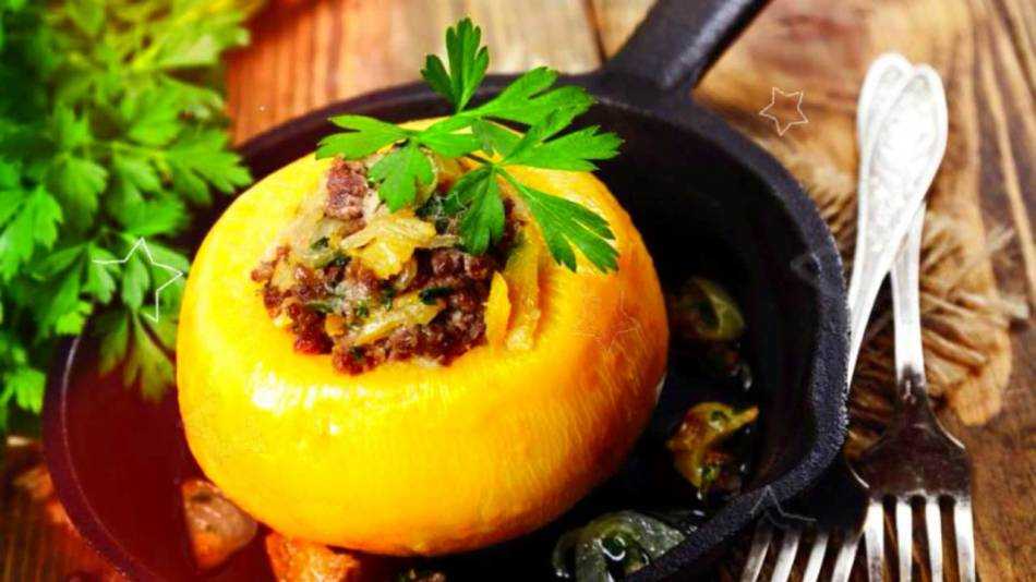 - В фарш отправить панировочные сухари, перемешать, нафаршировать овощ.