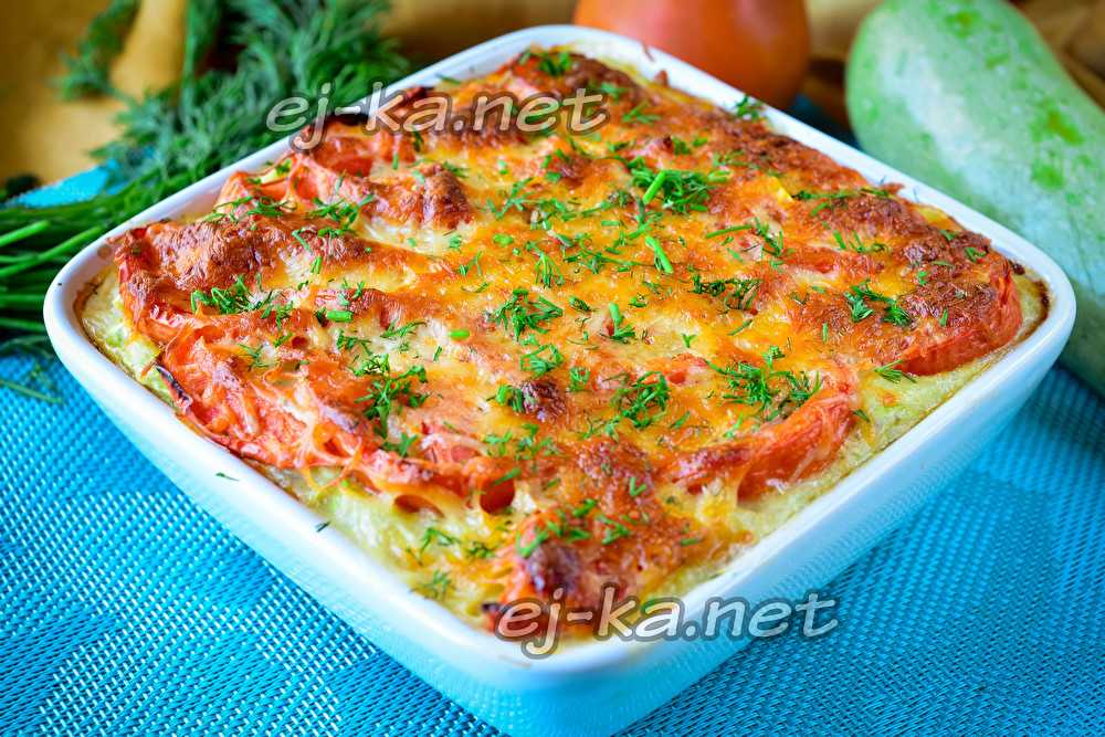 Слово запеканка – означает, что блюдо будет готовится из нескольких видов продуктов, причем сочетать можно овощи с мясом, с грибами, с творогом и так далее. В летний сезон можно готовить запеканку из кабачков с помидорами и сыром в духовке. С помощью пошагового рецепта с фото приготовить овощную запеканку не составить труда.