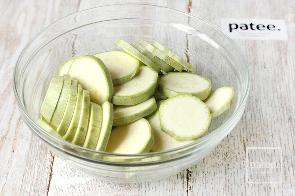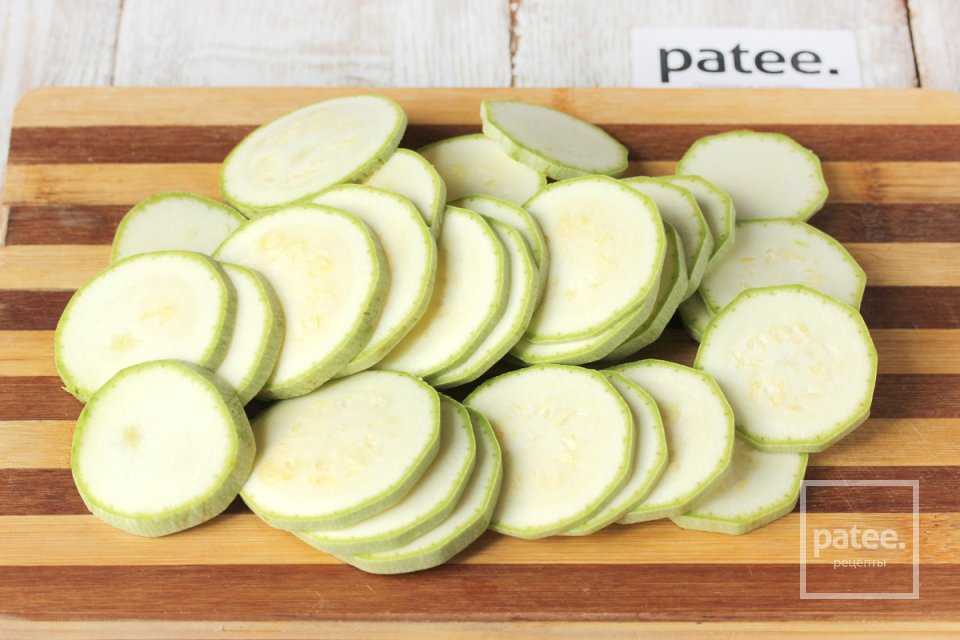 Нарезаем кружочками кабачки,
