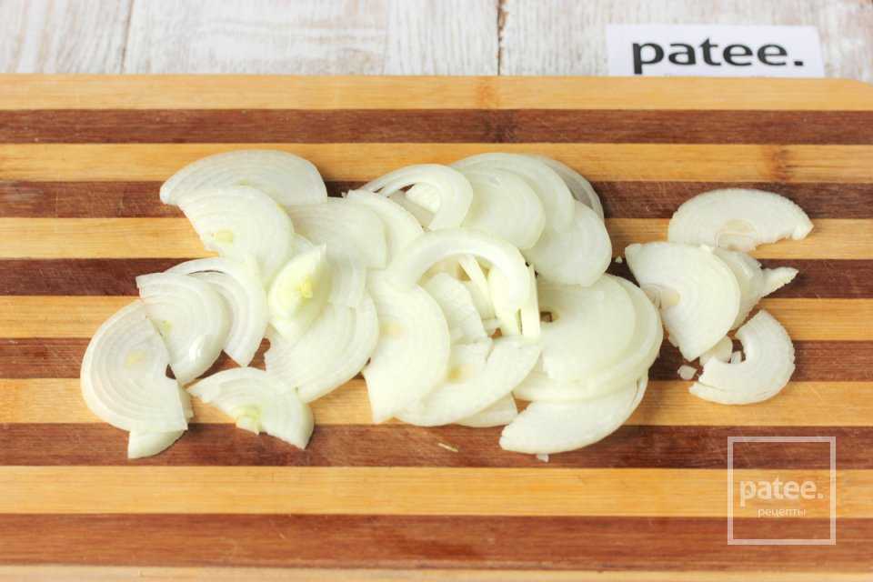 Репчатый лук чистим и нарезаем тонкими полукольцами.