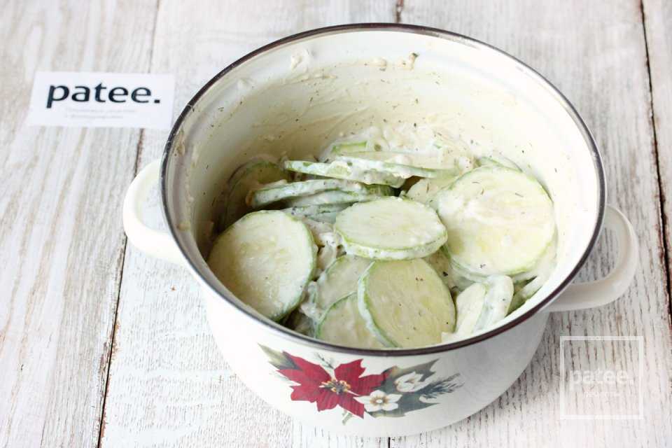 Лишнюю жидкость, которую пускают кабачки после соления, нужно непременно сливать, а мякоть отжимать.