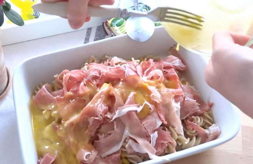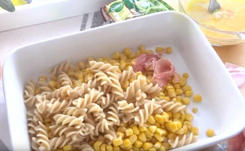 Вкусная макаронная запеканка с яйцом и ветчиной в духовке