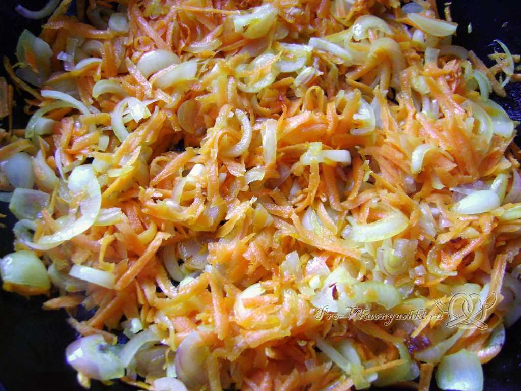 Отдельно жарим лук и морковь.