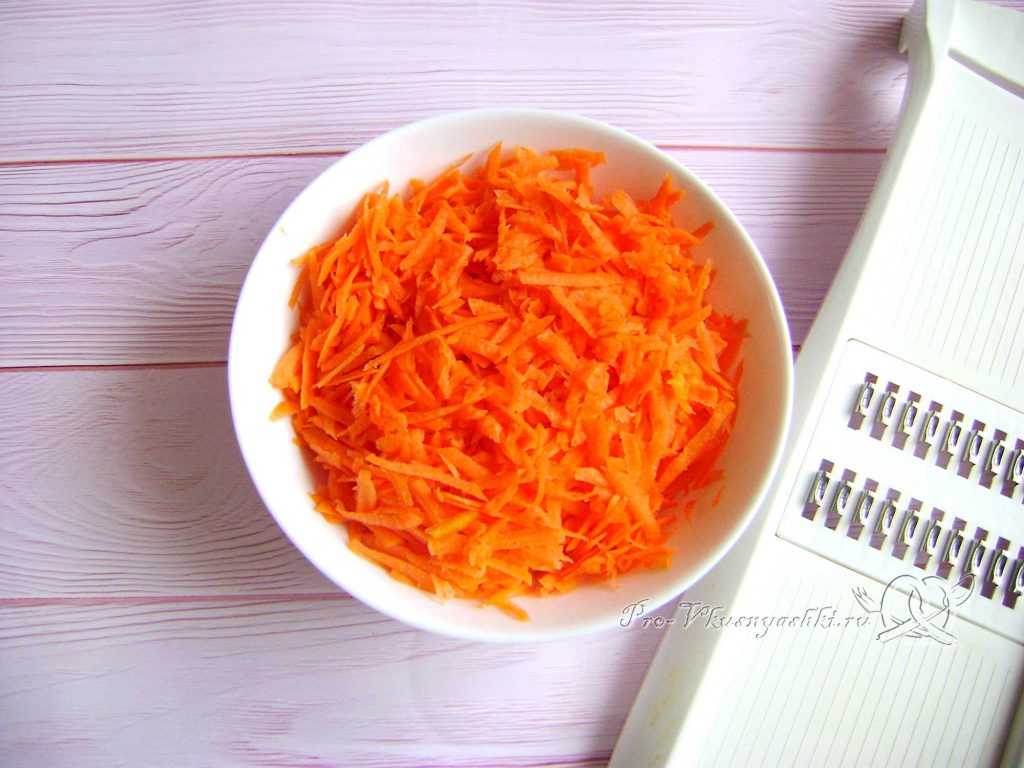 Очищенную морковь измельчаем на крупной терке.