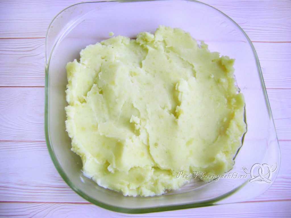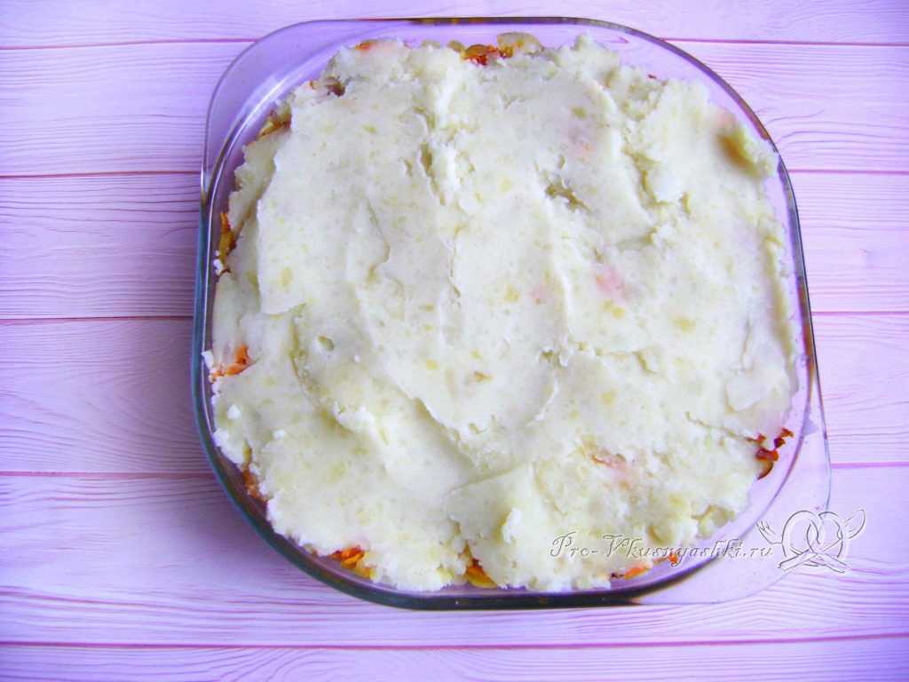 Самым последнем слоем идет вторая половина картофельного пюре.