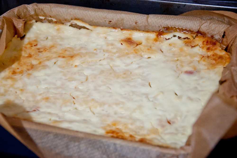 - Готовой запеканке дайте минут 10 остыть. Теперь ее можно нарезать и подавать к столу.