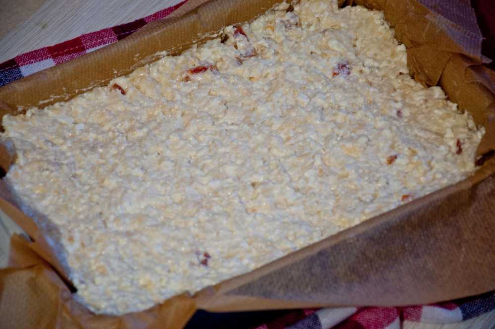 - Оставшиеся 50 г сливочного масла разложите небольшими кусочками по поверхности запеканки и отправьте форму в духовку, разогретую до 180°С, на 20-30 минут (зависит от мощности вашей техники).
