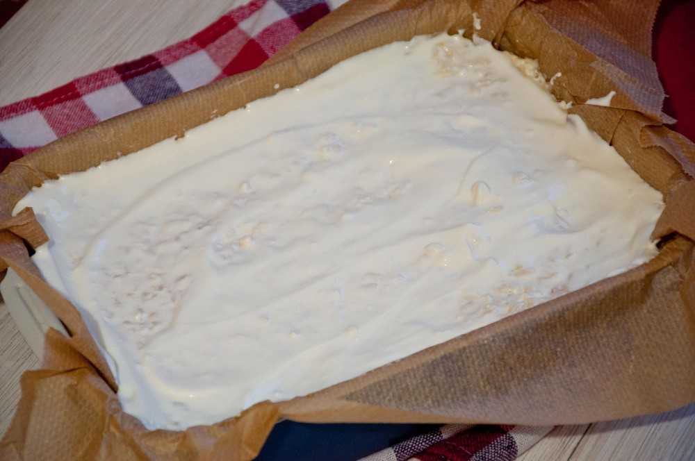 Дно и стенки формы смазать сливочным маслом. Влить в смазанную форму всю творожную смесь. И сразу же поставить в нагретую до 200 градусов духовку. Кстати, если хотите румяную поверхность запеканки, ее можно перед термообработкой смазать яйцом