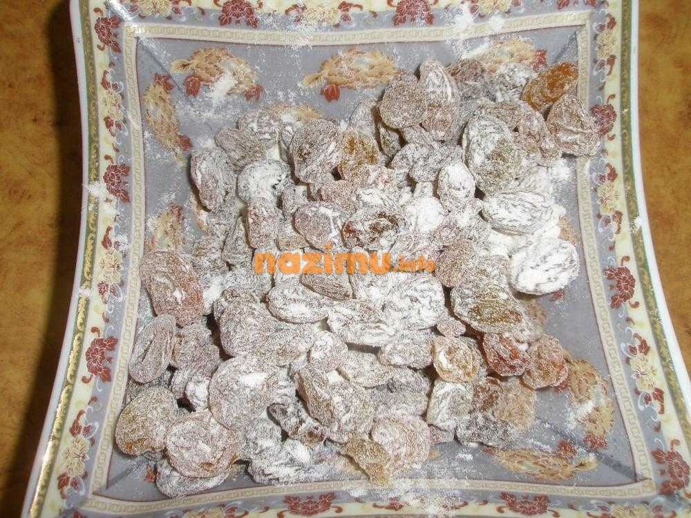 - Измельчите 100 г кураги на кубики и добавьте к творожной массе. Если у вас изюм или цукаты, кладите их целыми.
