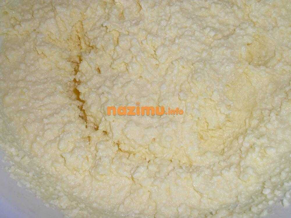 - А пока займитесь приготовлением теста. Творог разомните вилкой или протрите через сито (можно так же воспользоваться погружным блендером).