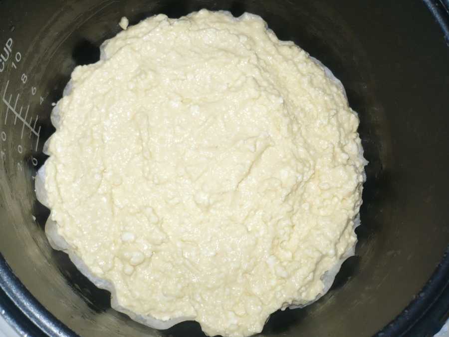 В итоге заготовка для запеканки должна получиться как жидкая сметана.