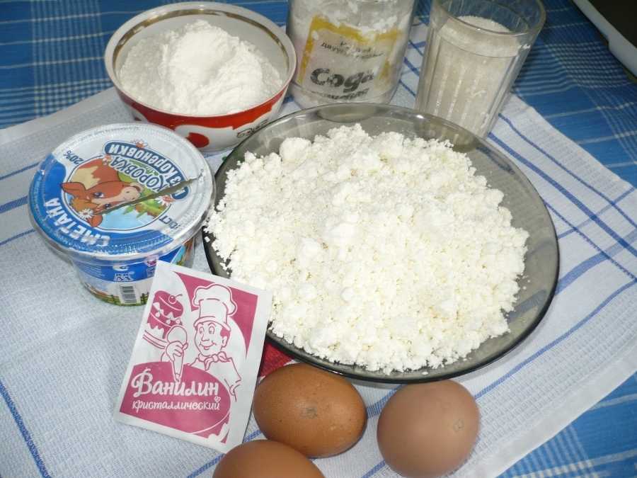 Итак, творог выложить в глубокую емкость, добавить к нему сметану и молоко.