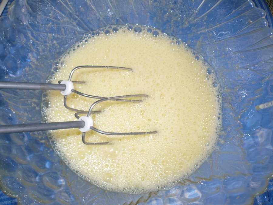Взбить яичную смесь, воспользовавшись миксером (масса должна увеличиться в объеме 2 раза). Именно хорошо взбитые яйца придадут в будущем запеканке пышность и воздушность.