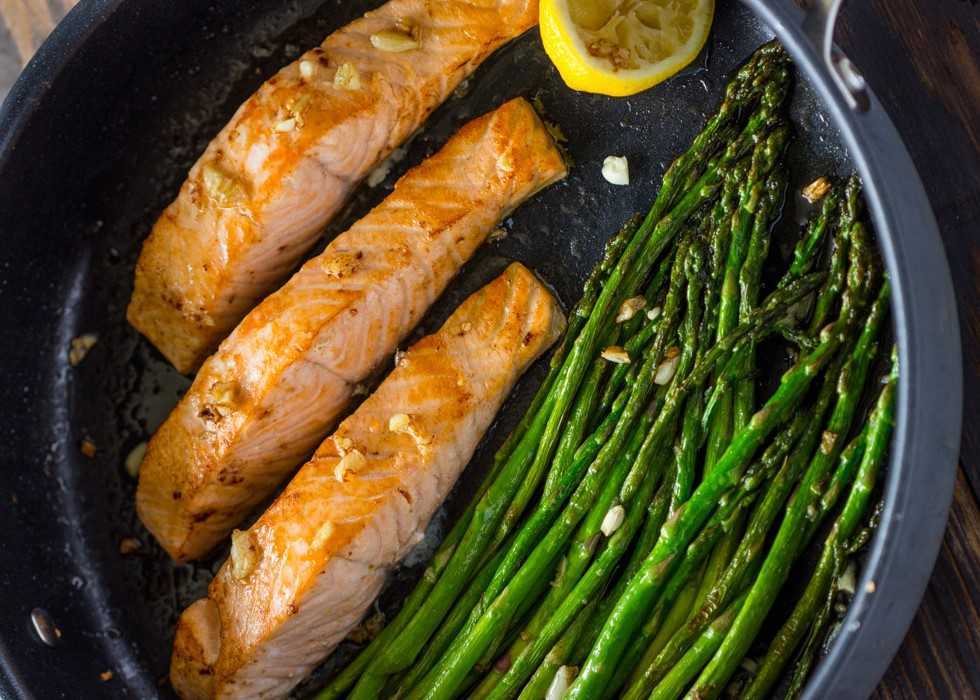 Блюдо с зеленой спаржей и красной рыбой выглядит очень изысканно, а запекается достаточно просто. Прекрасная закуска для приема гостей.