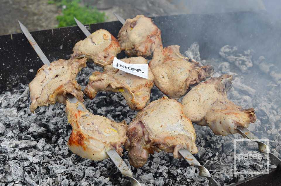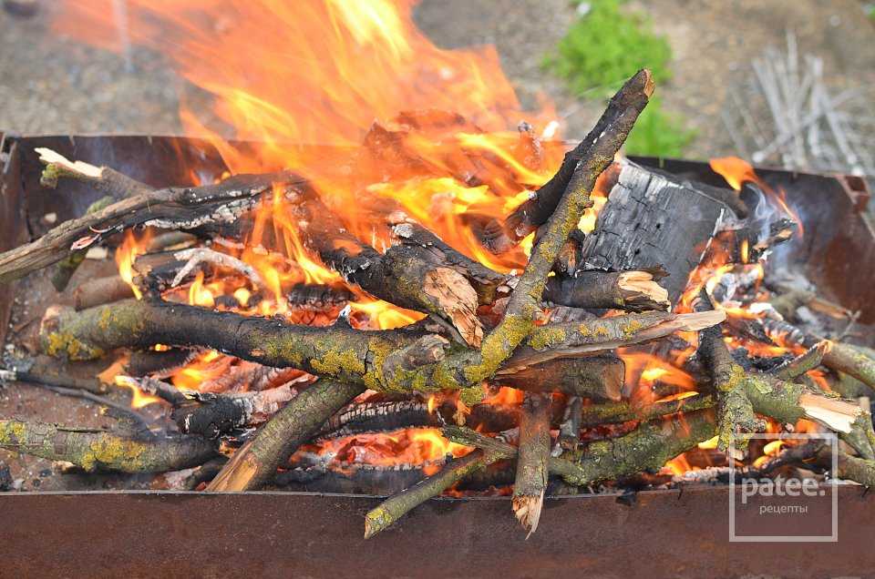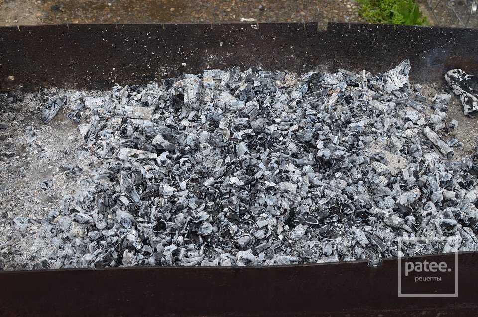 Следите за углями, чтобы не появлялись языки пламени. В тех местах, где они вспыхивают, просто брызните водой из бутылки. И периодически переворачивайте мясо, чтобы оно равномерно зажарилось со всех сторон.