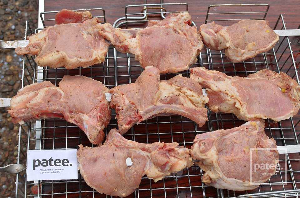 Ингредиенты: свиное мясо на кости, черный молотый перец, растительное масло, соль и специи по вкусу.