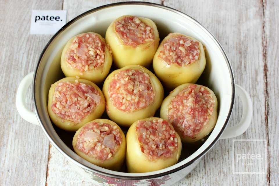 Наполняем фаршем перцы и выкладываем в кастрюлю.