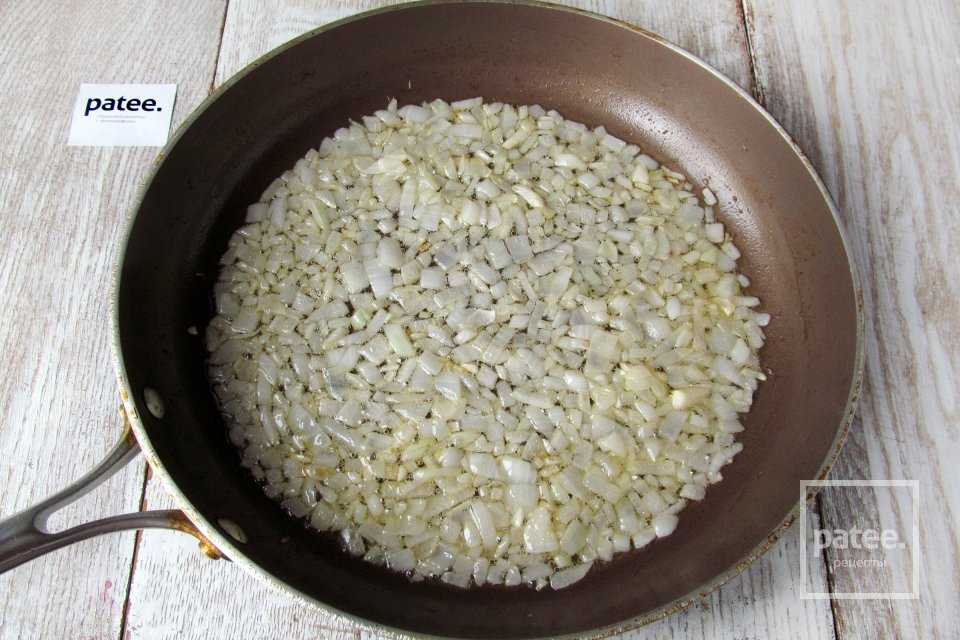 Лук и морковку также очистим. Лук мелко нарежем и высыплем на сковороду с разогретым растительным маслом. Помешивая, спассеруем лук в течение 2-3 минут, а затем добавим морковку, тёртую на крупной тёрке. Продолжим пассеровать, изредка помешивая, до мягкости.