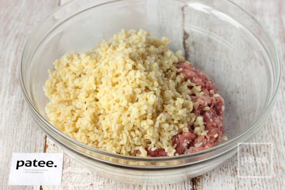 В свиной фарш добавляем булгур.