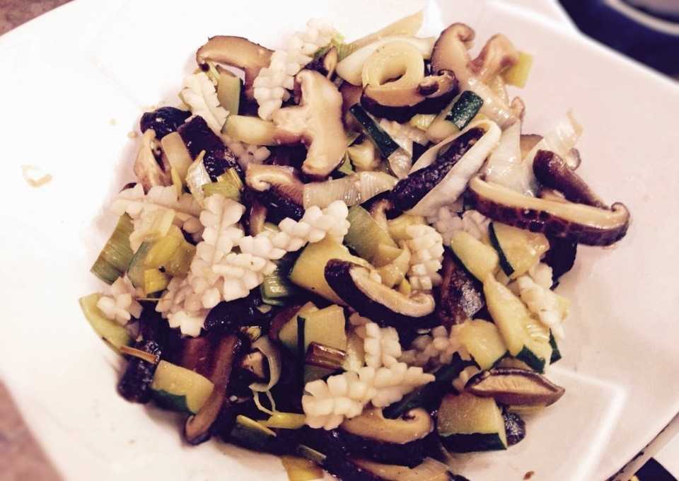 Жаркое из кальмаров и грибов